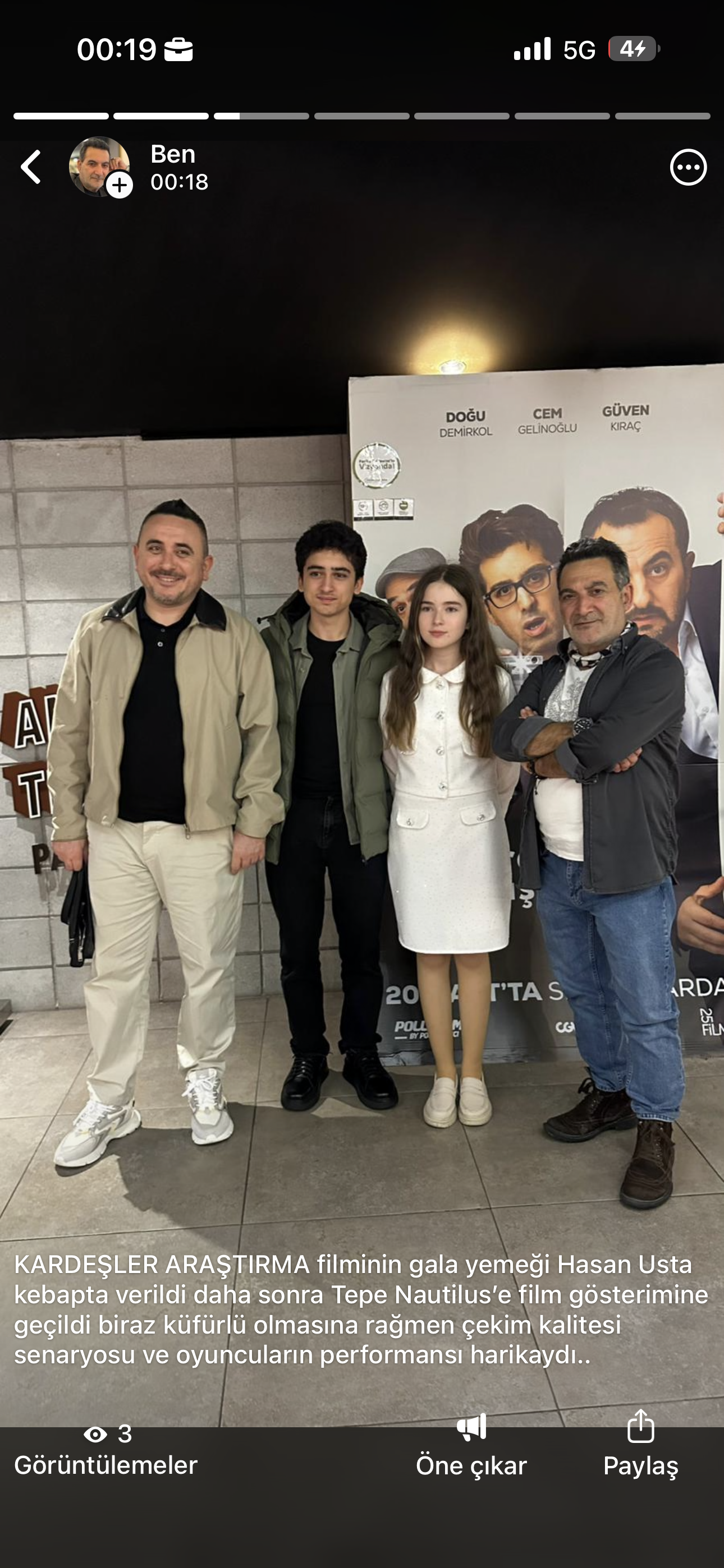 Kardeşler Araştırma filminin gala yemeği Hasan Usta kebapta verildi. Kardeşler araştırma filminin oyuncuları sinema eleştirmenleri sanatseverler ve gazeteciler Hasan Usta kebapta gala yemeğinde buluştu. Yemeğe sinema ve sanat dünyasından renkli isimler de katıldı. Hasanusta-kebap yönetim kurulu başkanı İzzettin Oral yemeğe katılanlara ve oyunculara teşekkür etti. Oral filmin hem komedi hem hayatın gerçekleri bakımından önemli bir trajikomik konuyu işlediğini ve izleyenleri çok eğlendireceğine inandığını söyledi. Oral misafirleri tek tek karşıladı ve katıldıkları için herkese teşekkür etti. Yemekten sonra Tepe Nautilus sinemalarında film gösterimine geçildi. Filmi izleyenler çok güldüklerine ve eğlendiklerini belirttiler.