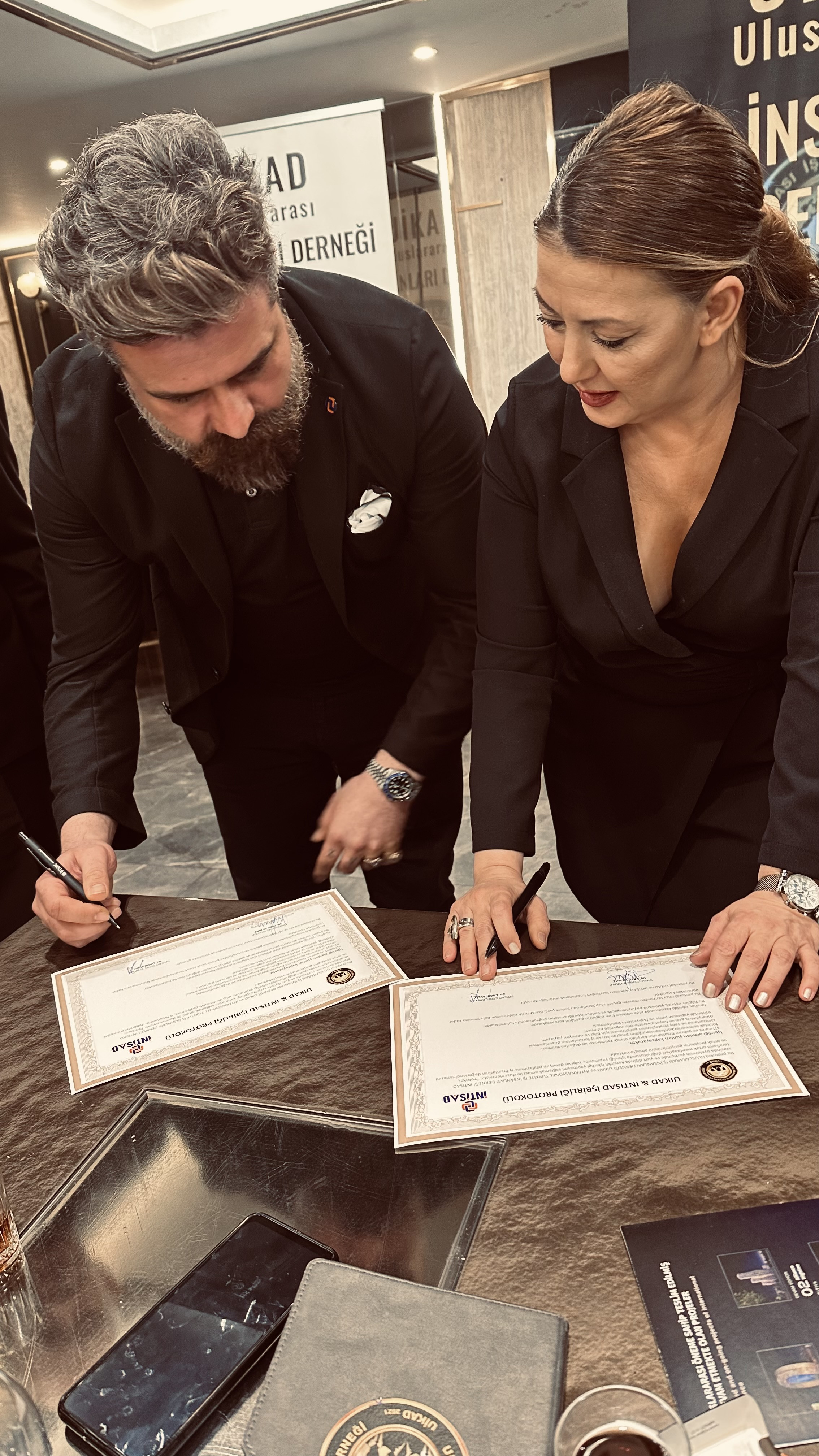 Ekonomik İşbirliği toplantısına katkıda bulunanlara birer plaketle teşekkür edildi. ayrıca UİKAD ile İNTİSAD arasında işbirliği protokolü imzalandı.