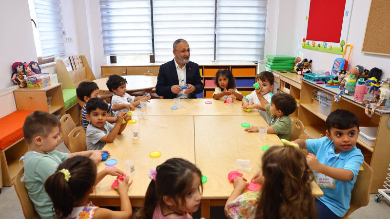Başkan Özmen, toplamda 50 öğrenci kapasiteli 3 sınıftan oluşan merkezi ziyareti sırasında çocuklarla sohbet ederek etkinliklere katıldı.