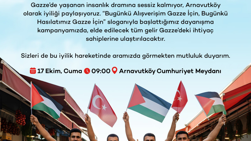 Gazze’de yaşanan insanlık dramına sessiz kalmıyor, Arnavutköy olarak iyiliği paylaşıyoruz.