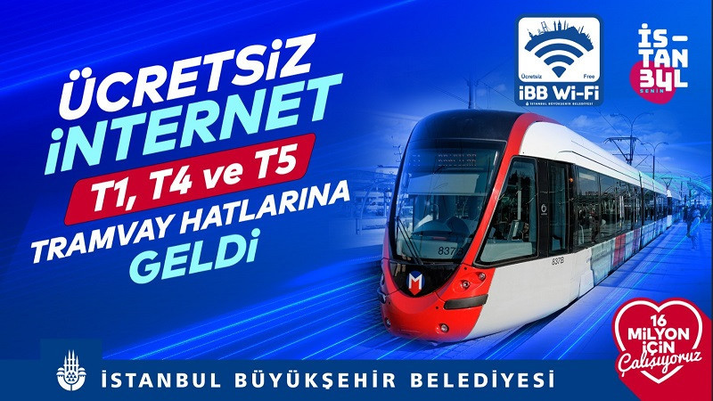 İBB, ücretsiz ve sınırsız interneti tramvaylara taşıyor. İBB WiFi hizmeti, T1 (Bağcılar-Kabataş), T4 (Topkapı-Mescid-i Selam) ve T5 (Cibali-Alibeyköy Cep Otogarı) tramvay hatlarında devreye alındı.