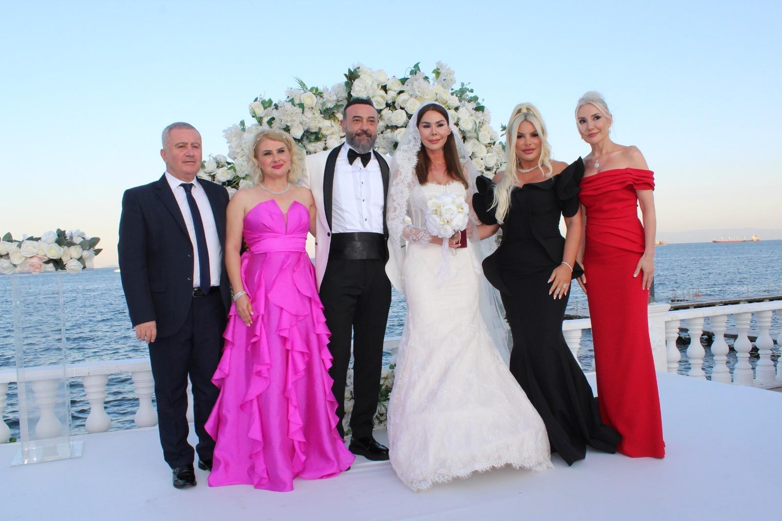 Rüzgarlı bir havada martların dansıyla renklenen düğün merasimine katılanlar farklı bir asmosferde mutlu bir evliliğe şahirlik ettiler.