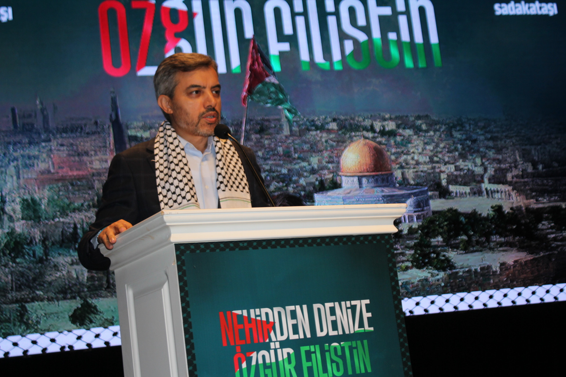 7 Ekim 2023’un yıldönümünde Nehirden Denize Özgür Filistin Kitabı'nın tanıtım programı, organizasyonu gerçekleştiren Sadakataşı Derneği Başkanı Kemal Özdal'ın açılış konuşmasıyla devam etti.