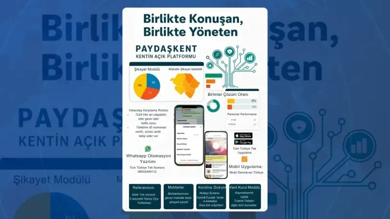 Türkiye’de yerel yönetimlerde vatandaş katılımını yeniden tanımlayacak dijital bir adım atıldı. “Paydaşkent” çatısı altında geliştirilen Mobil Demokrasi Platformu, WhatsApp tabanlı yapısıyla resmen devreye girdi. Sistem, vatandaşların sadece sorun bildirmesini değil; öneri, fikir ve taleplerini de doğrudan şehir yönetimine ulaştırabilmesini sağlıyor.