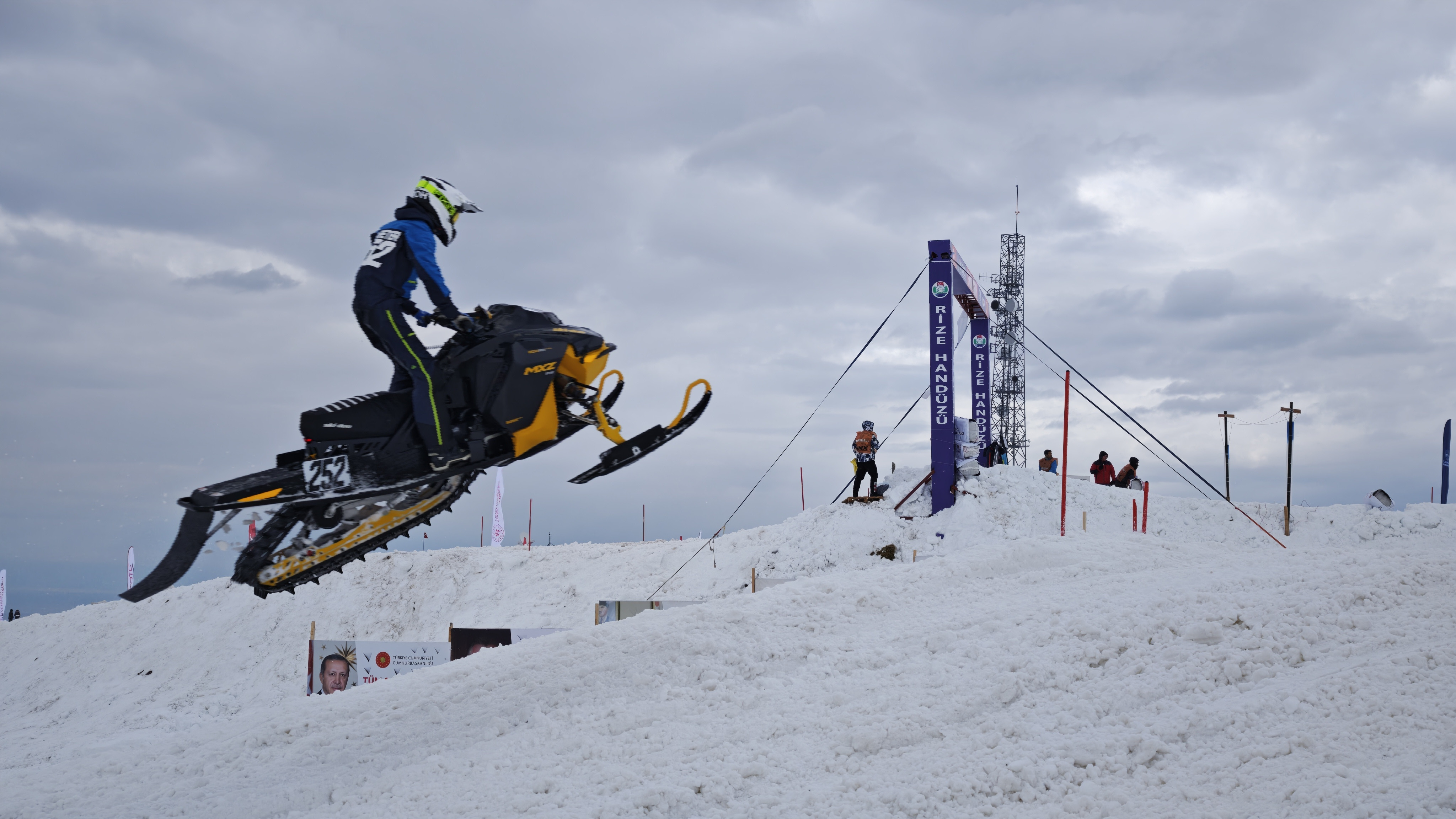 Rize’nin 1800 rakımlı, deniz manzaralı Handüzü Yaylası’nda gerçekleştirilen SNX Türkiye Dünya Kar Motosikleti Şampiyonası’nın Türkiye ayağında ilk gün yarışları sona erdi. Kar kalınlığının yer yer 2 metreyi aştığı yaylada, özel olarak hazırlanan 650 metre uzunluğundaki pistte sporcular kıyasıya mücadele etti.